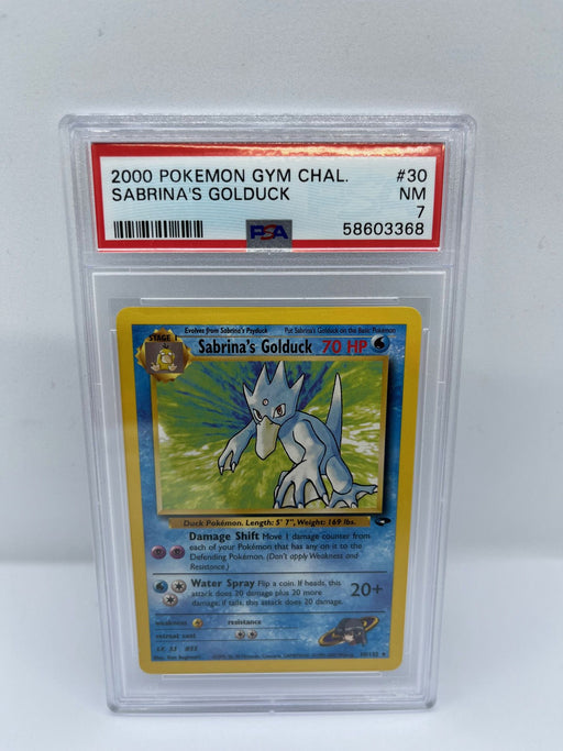 Original price £49.99 - Original price £49.99Original price£49.99£49.99 - £49.99Current price £49.99| /Low stockSabrina's Golduck 30/132 PSA 7 Rare Pokemon Card (2000 Pokemon Gym Chal) Like all authentic graded PSA cards the card can be verified by the certif...