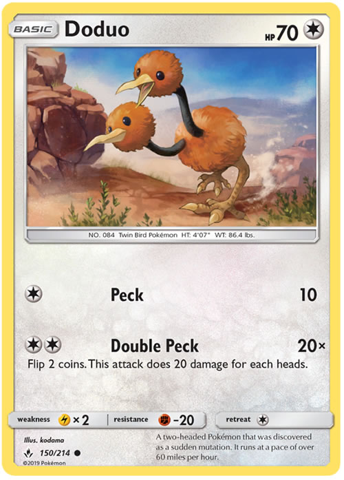 Original price £0.45 - Original price £0.45Original price£0.45£0.45 - £0.45Current price £0.45| /Low stock1x Near Mint Doduo 150/214 Common Reverse Holo Pokemon Card from the Sun & Moon Unbroken Bonds set of the Pokemon Trading Card Game. The card w...