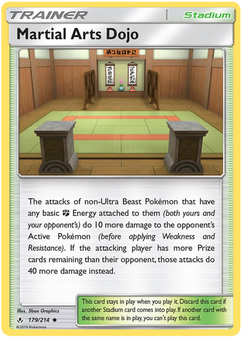 Original price £0.65 - Original price £0.65Original price£0.65£0.65 - £0.65Current price £0.65| /Out of stock1x Near Mint Martial Arts Dojo 179/214 Uncommon Pokemon Card from the Sun & Moon Unbroken Bonds set of the Pokemon Trading Card Game. The card ...