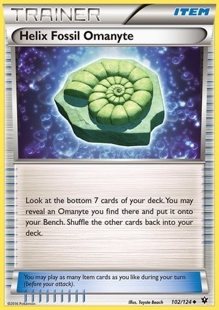 Original price £1.95 - Original price £1.95Original price£1.95£1.95 - £1.95Current price £1.95| /Low stockA near mint Helix Fossil Omanyte 102/124 Reverse Holo Pokemon card from XY Fates Collide set of the Pokemon TCG.