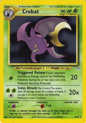A near mint Crobat 4/64 Pokemon card from Neo Revelation set of the Pokemon TCG.