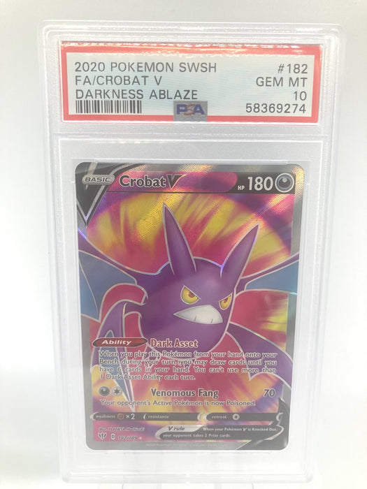Crobat V 182/189 PSA 10 Gem Mint Graded Pokemon Card from the Darkness Ablaze expansion of the Pokemon Trading Card Game.