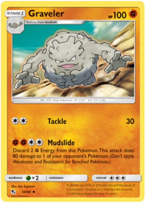 Graveler 34/68 Uncommon Reverse Holo Pokemon Card (Hidden Fates)