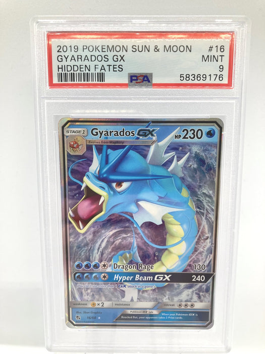 Gyarados GX 16/68 PSA 9 Mint Graded Pokemon Card from the Hidden Fates expansion of the Pokemon Trading Card Game.