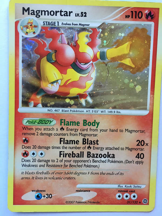 A near mint Magmortar 31/132 Pokemon card from Secret Wonders set of the Pokemon TCG.