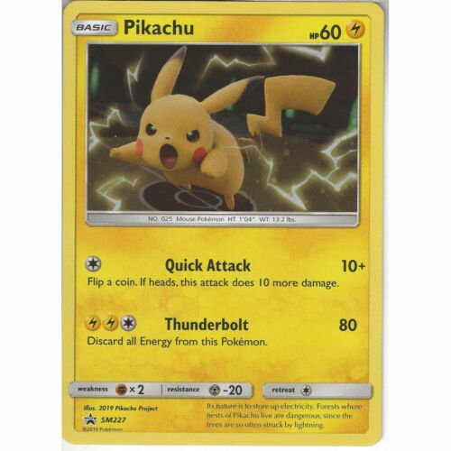 1x Near Mint Pikachu SM227 Rare Holo Pokemon Promo Card from the Sun & Moon Promo Set of the Pokemon Trading Card Game. The card will be well packed for protection in transit.