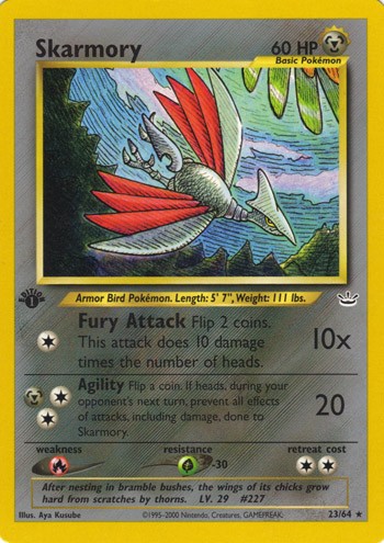 A near mint Skarmory 23/64 Pokemon card from Neo Revelation set of the Pokemon TCG.