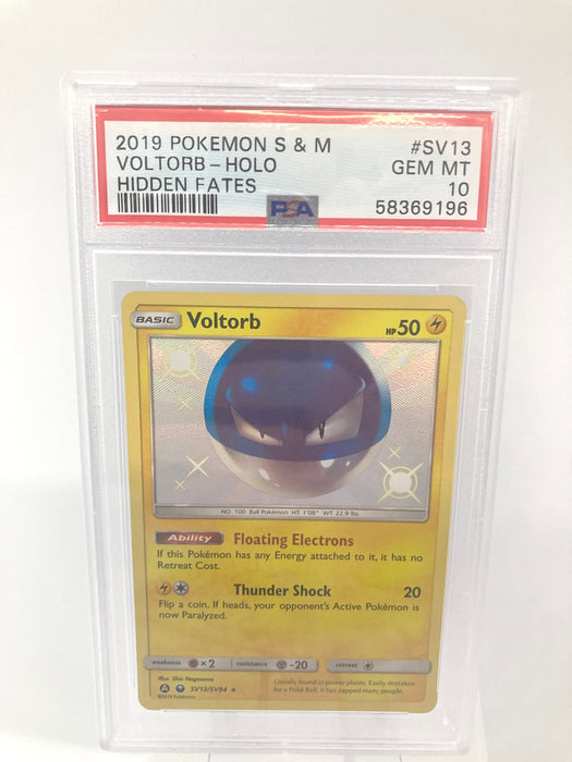 Voltorb SV13/SV94 PSA 10 Gem Mint Graded Pokemon Card from the Hidden Fates expansion of the Pokemon Trading Card Game.